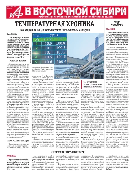 Еженедельник «Аргументы и Факты» № 50. АиФ в Восточной Сибири 10/12/2025