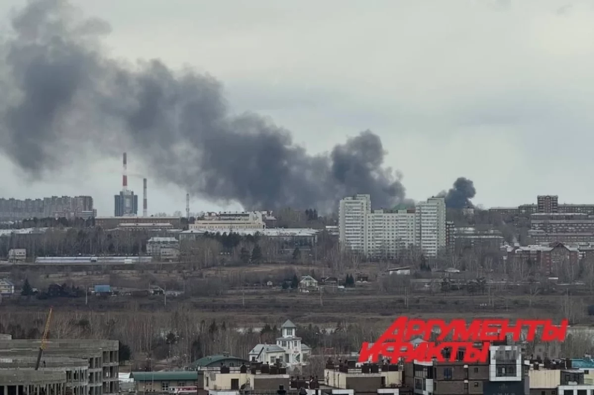 Судя по кадрам пожара, из эпицентра валит густой серый дым. Что именно загорелось, пока точно неизвестно. Однако Telegram-каналы пишут, что горит кровля масложирокомбината.