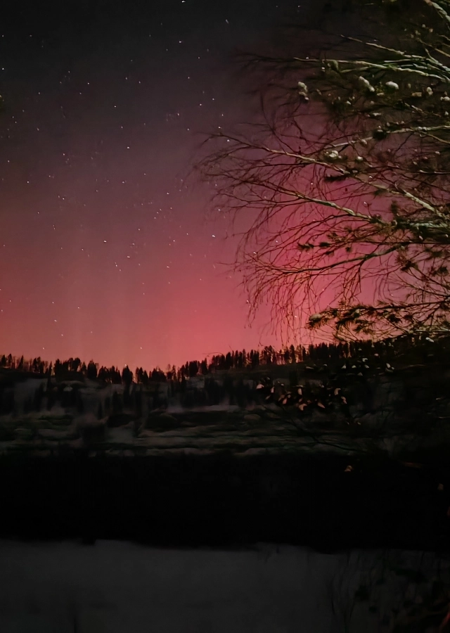 Был уже час ночи, на берегу реки Иркут в Шелеховском районе Иркутской области стояла самая настоящая стужа. Сияние Екатерина сфотографировала на самый обычный телефон в «ночном режиме» — у неё не было штатива и возможности подбирать экспозицию и светочувствительность, да и руки дрожали из-за мороза. Однако в итоге «небесные огни» получились на снимке даже без специальной обработки в приложениях.