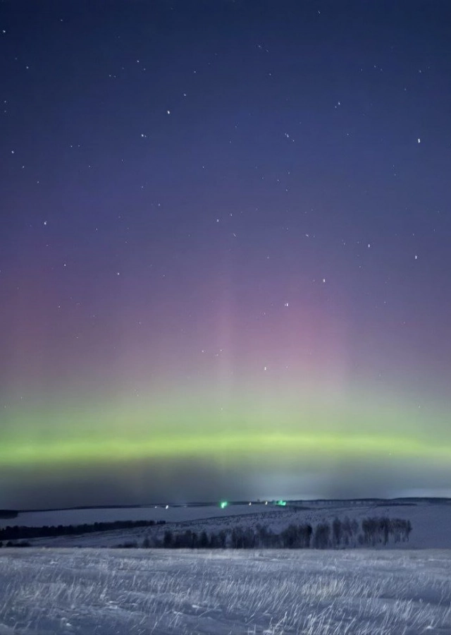«В минус 34 стоило вылезть из под одеяла», — уверена Юлия Погодаева из города Усть-Илимска на севере Иркутской области. Ей и раньше приходилось фотографировать северное сияние — правда, это было в середине августа 2024 года. Тогда мёрзнуть, конечно, не пришлось. А вот в ночь на 21 января из-за красивых снимков любитель астрономии обморозила руки! Правда, потом отогрела. И ничуть не жалеет.