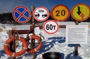 В настоящее время специалисты расчищают будущую ледовую дорогу с помощью автогрейдера, заливают трещины и устанавливают вешки.
