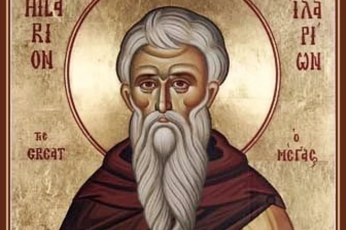 Преподобный Иларион Великий появился на свет в Палестине в 291 году. Получив блестящее образование в Александрии, он принял христианство и стал верным учеником преподобного Антония Великого. После кончины родителей он раздал унаследованное имущество и уединился в пустыне близ Маиума, где провел долгие годы в строжайшем аскетическом подвиге, неустанно сражаясь с искушениями, насылаемыми бесами. За свою непоколебимую веру и праведную жизнь Господь наделил его даром исцеления и изгнания нечистой силы, которым он бескорыстно помогал страждущим людям. За несколько лет до своей кончины Иларион перебрался на Кипр, где продолжил свой подвиг в уединенном месте, пока не был призван Господом к себе в 371-372 годах.