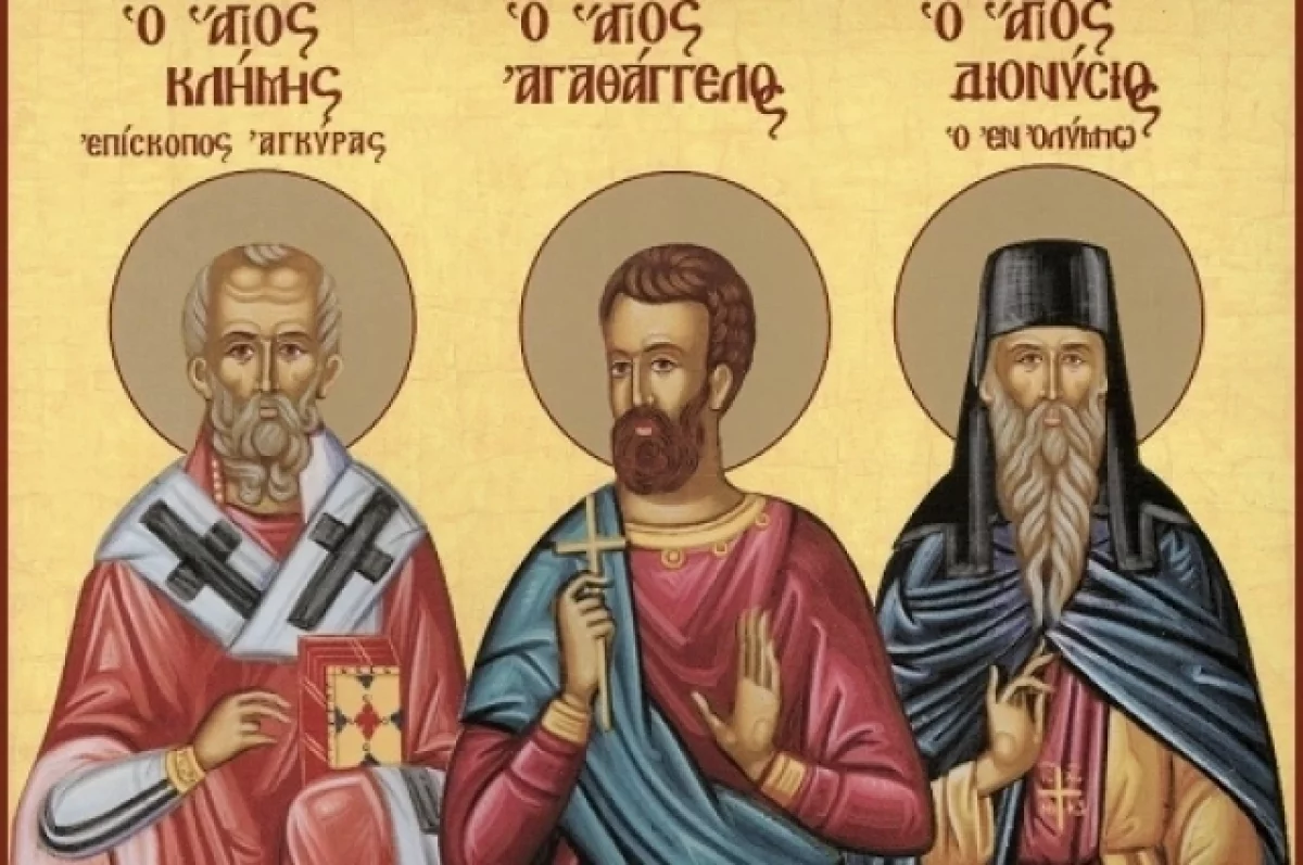 Священномученик Климент, учитель Агафангела родился в 258 году в Анкире (Галатия) от отца-язычника и матери-христианки. Рано осиротев, он был воспитан благочестивой женщиной Софией и с юности посвятил себя служению Богу и ближним: во время голода собирал и кормил брошенных детей, готовя их к Крещению. За добродетельную жизнь он в 20 лет был рукоположен во епископа Анкирского. С началом гонений Диоклетиана святой Климент был схвачен и предан неимоверным пыткам: его тело резали железом, жгли на огне, пытали на колесе. Господь чудесно исцелял его раны, что поражало мучителей и обращало ко Христу многих язычников.