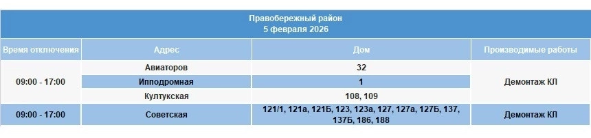 Света в домах не будет в период с 9 утра до 17 вечера. Отключения затрагивают Ленинский, Октябрьский, Правобережный и Свердловский районы.
