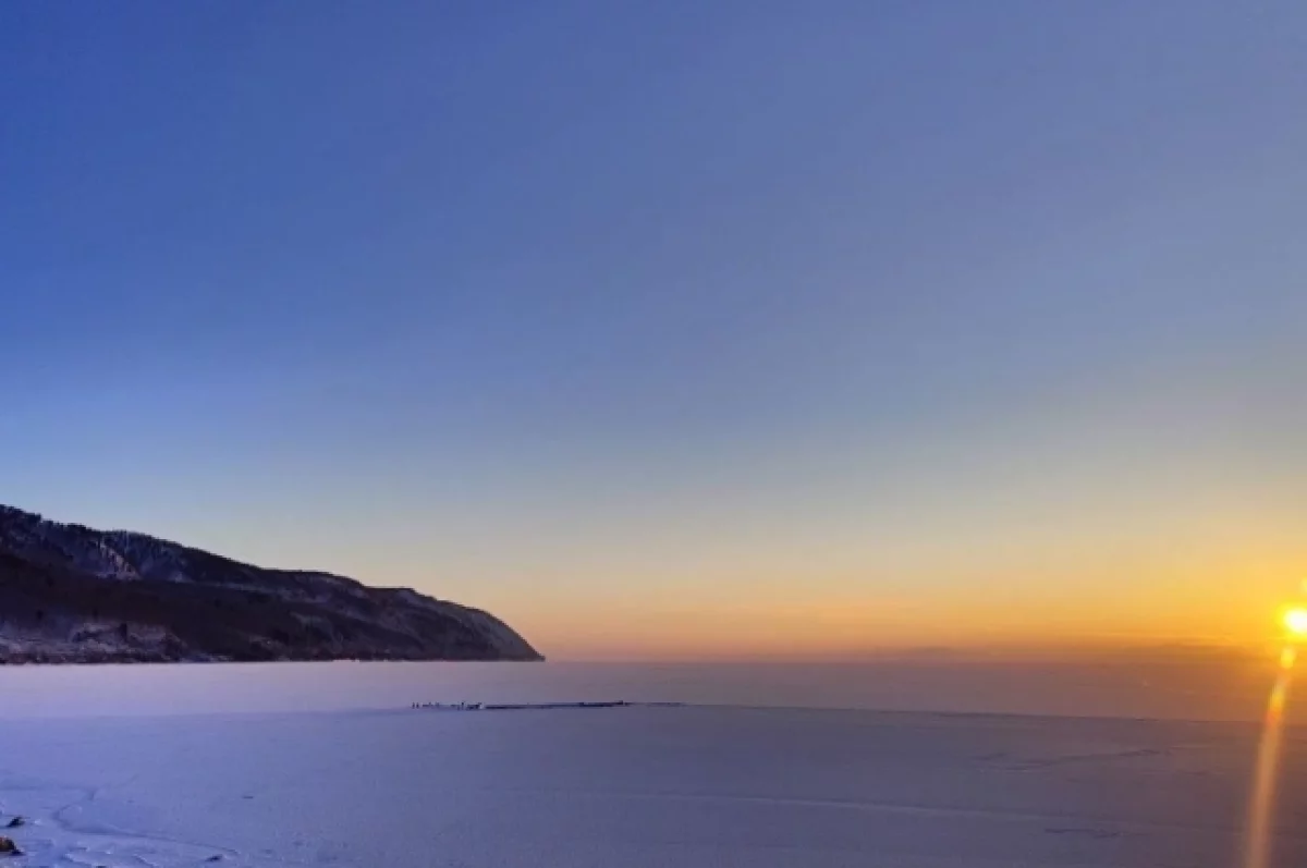 По словам госинспектора, еще накануне Байкал вдоль Кругобайкальской железной дороги местами парил, а уже утром 19 января встречал рассвет застывшим и припорошенным.
