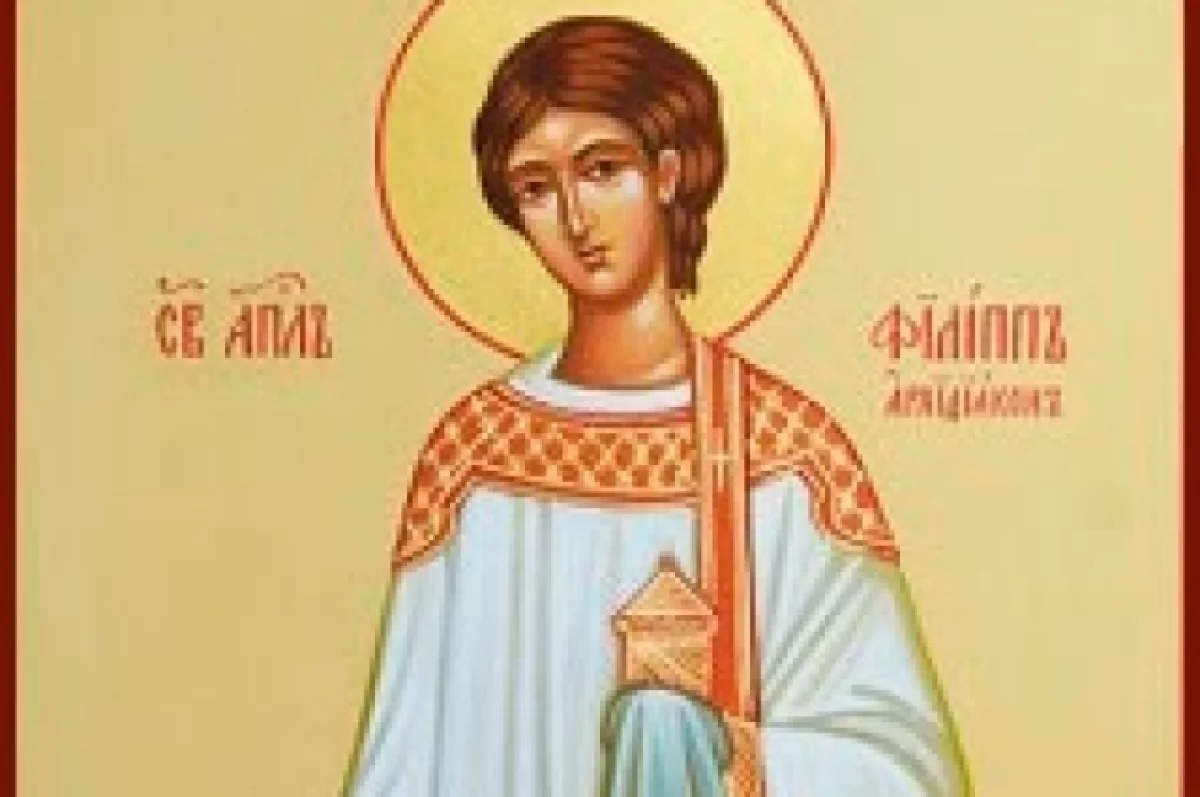 Святой апостол Филипп, один из семидесяти, родился в Кесарии Палестинской, был женат и имел детей. После Сошествия Святого Духа двенадцать апостолов поставили его на диаконское служение в Иерусалимской Церкви и поручили, как и прочим шести диаконам, заведовать приношениями верующих и заботиться о вдовах, сиротах, убогих. Старшим среди семи перводиаконов был святой архидиакон Стефан.