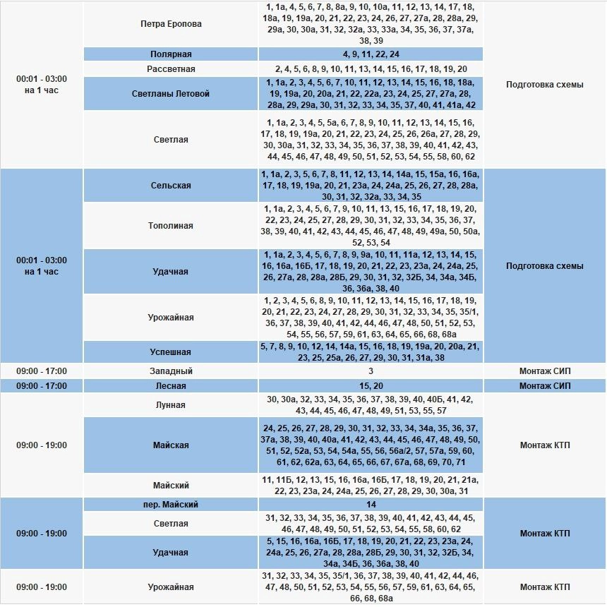 В Октябрьском районе с 09:00 до 16:00 пройдут отключения в части домов на улицах: Загоскина, Трилиссера, Ядринцева, Байкальская, Крылатый, Ширямова, Комическая, Третья, а также Солнечный, Солнечный 1 и 2 — полностью.