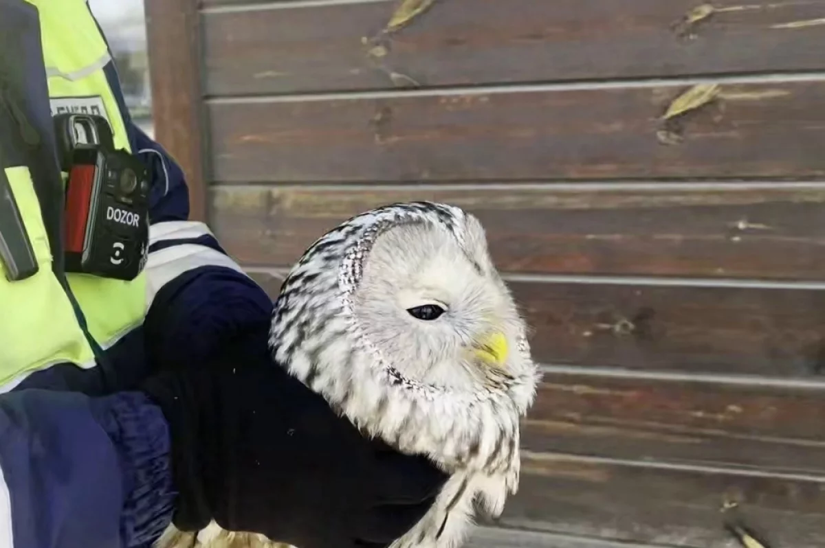 Во время патрулирования полицейские заметили на дороге хищную птицу, едва перелетевшую в придорожный сугроб. Госинспектор технадзора лейтенант полиции Роман Файзулин и старший инспектор ДПС старший лейтенант полиции Григорий Федоров аккуратно поймали сову, поместили её в коробку и передали специалистам.