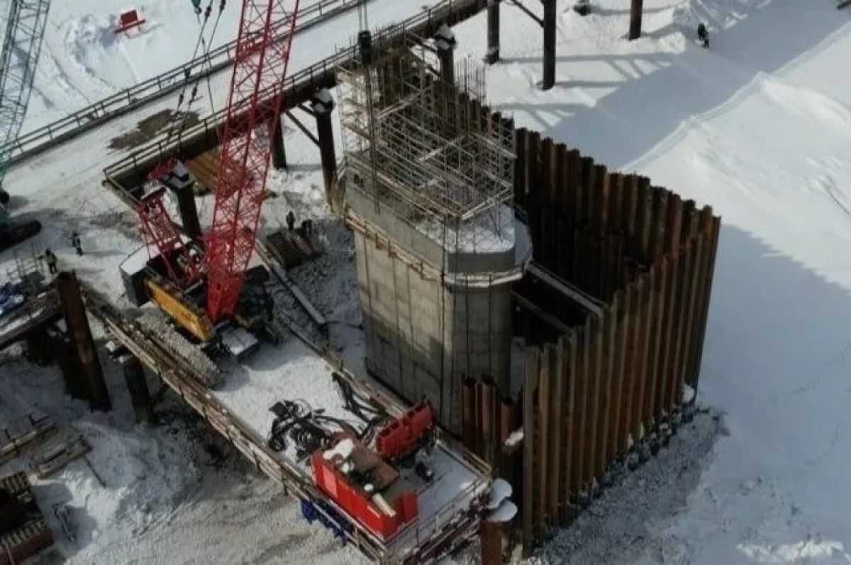 «В русле реки завершается создание опоры №2. Её тело и фундамент полностью сформированы, использовано 800 кубометров бетонной смеси. Также начато устройство опалубки для бетонирования стоек», — говорится в сообщении.